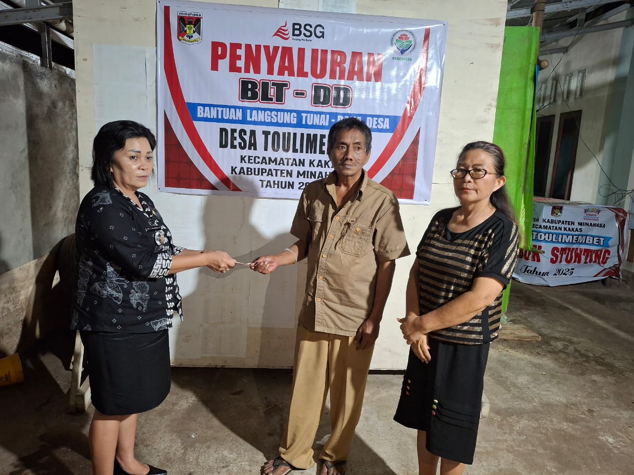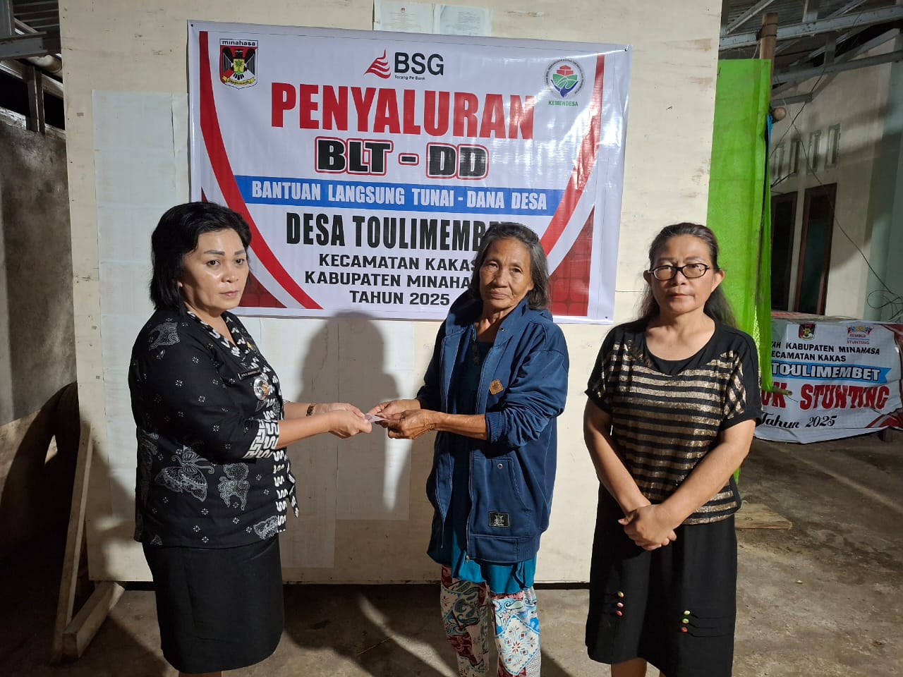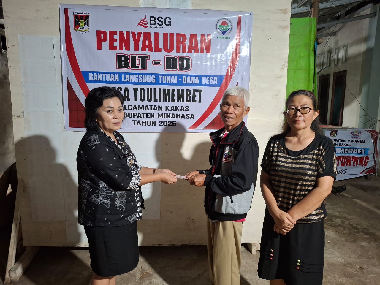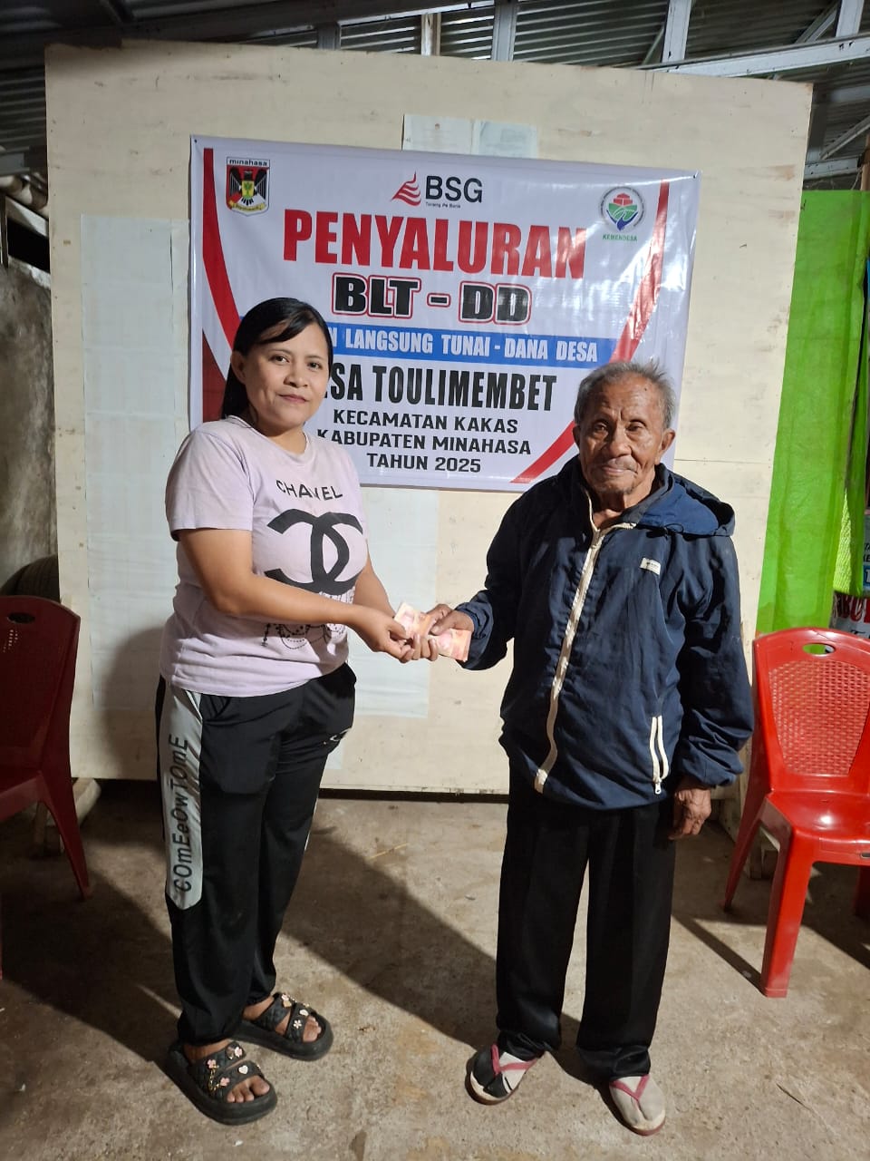 Pemerintah Desa Toulimembet kembali menyalurkan Bantuan Langsung Tunai (BLT) yang diberikan pada 22 Mei 2025, hal ini dikatakan Hukum Tua (Kumtua) Desa Toulimembet Mariani Badi.