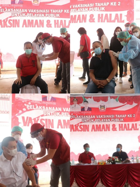 Dalam pencanangan vaksinasi tahap dua ini, diawali dengan penyuntikan vaksin dosis pertama kepada Walikota Tomohon, Wakil Walikota dan Penjabat Sekot Tomohon, serta para Kadis, Kaban dan Masyarakat umum lainnya.