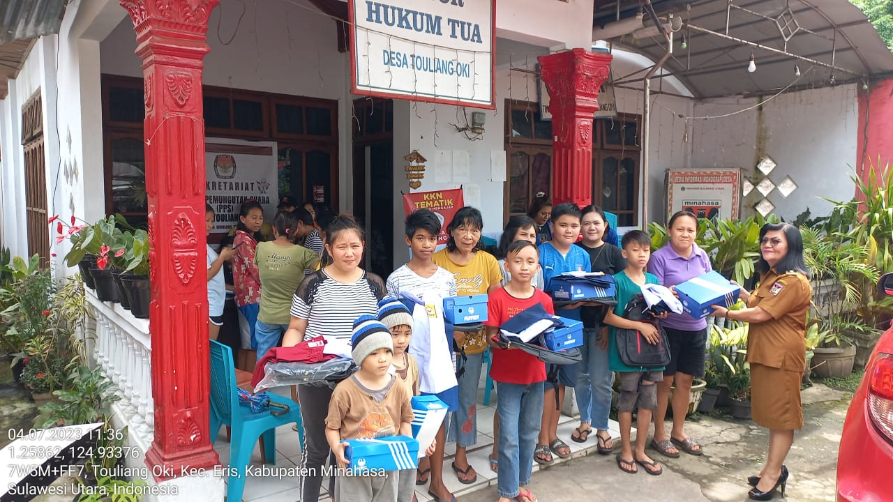Pemerintah Desa Touliang Oki, Kecamatan Eris, Kabupaten Minahasa menyalurkan seragam sekolah untuk anak kelas 1 SD dan Kelas 1 SMP. Sebanyak 74 Siswa menerima bantuan ini, diserahkan Selasa 4 Juli 2023, bertempat di kantor Hukum Tua Desa Touliang Oki.