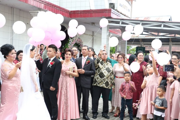 Wakil Bupati Minahasa Robby Dondokambey SSi menghadiri pemberkatan nikah dari Marvil Rawung SH dan Citamy Sumampouw SSTP, pada Kamis 20 Februari 2020 di GMIM Baitel Eris, Desa Eris, Kecamatan Eris.