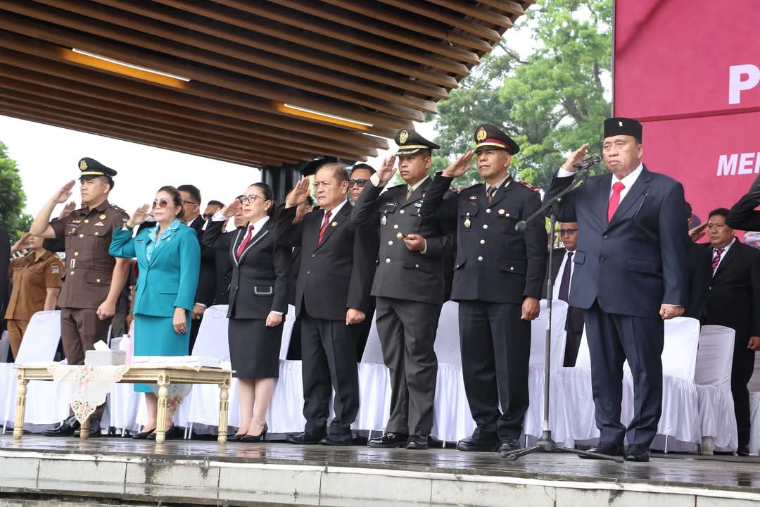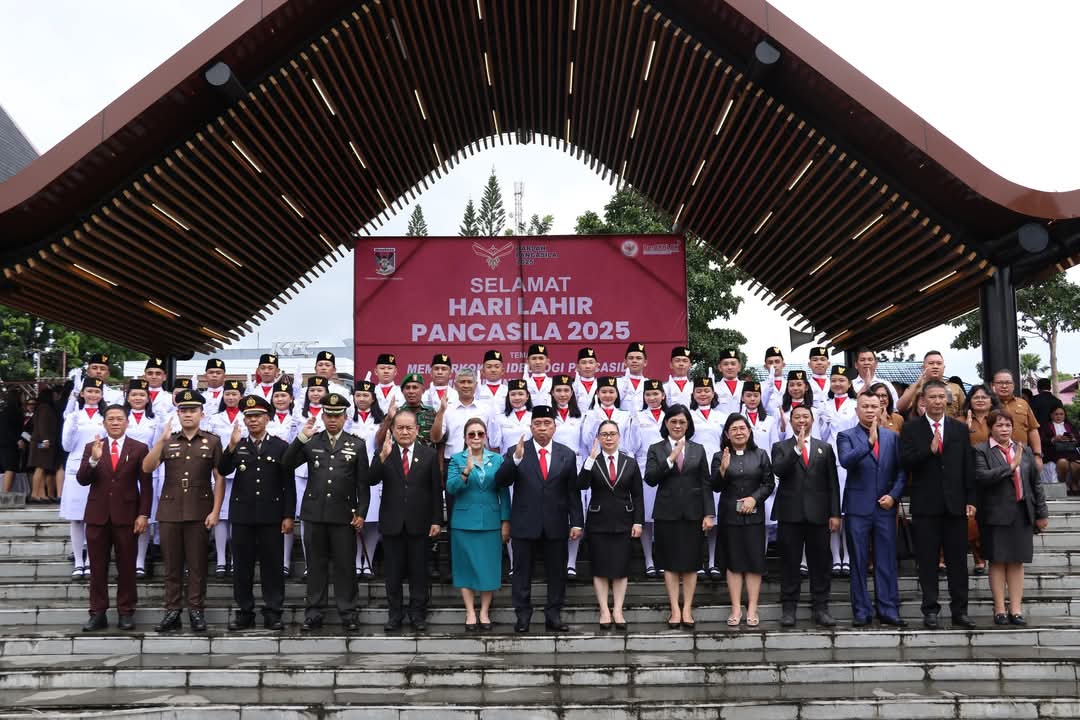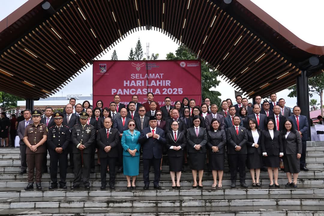 Bupati Minahasa Robby Dondokambey Bertindak selaku inspektur upacara dalam rangka memperingati Hari Lahir Pancasila bertempat di Lapangan Dr. Sam Ratulangi Tondano, pada Senin 2 Juni 2025.