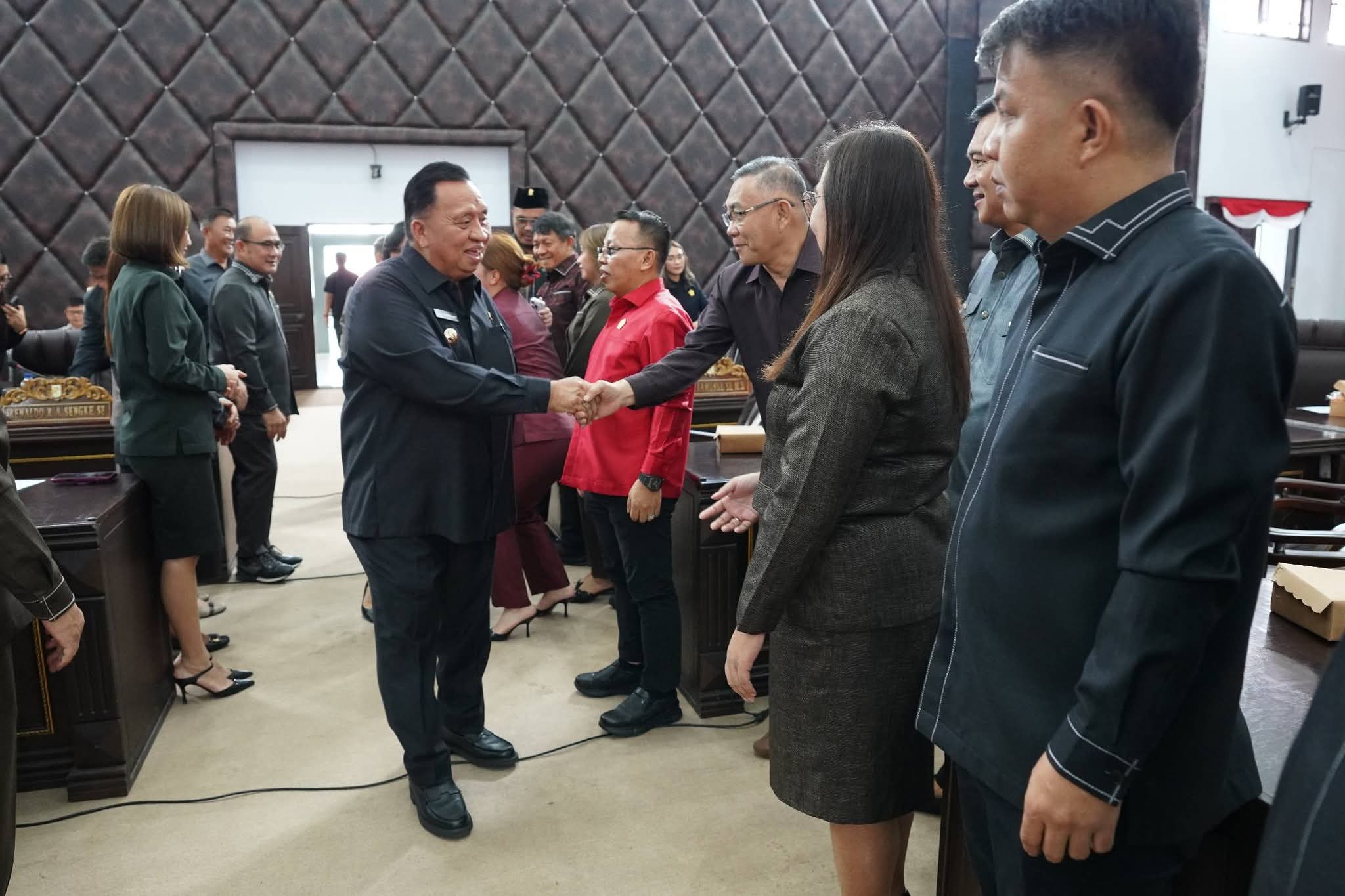Bupati Minahasa Bapak Dr. Robby Dondokambey, S.Si, MAP. bersama Wakil Bupati Minahasa Vanda Sarundajang, SS, juga Sekretaris Daerah Kabupaten Minahasa Dr. Lynda D. Watania, MM, M.Si. Menghadiri Rapat Paripurna DPRD Kabupaten Minahasa Dalam Rangka Penyampaian Laporan Keterangan Pertanggungjawaban Kepala Daerah Kabupaten Minahasa Tahun Anggaran 2025 yang dipimpin oleh Ketua DPRD Kabupaten Minahasa Drs.Robby Longkutoy, MM. didampingi Wakil Ketua DPRD Minahasa Ibu Putri M. Pontororing, SE. dan Adrie Kamasi, SH, MH. Bertempat di Ruang Sidang DPRD Minahasa. Pada Senin (16/3/2026).