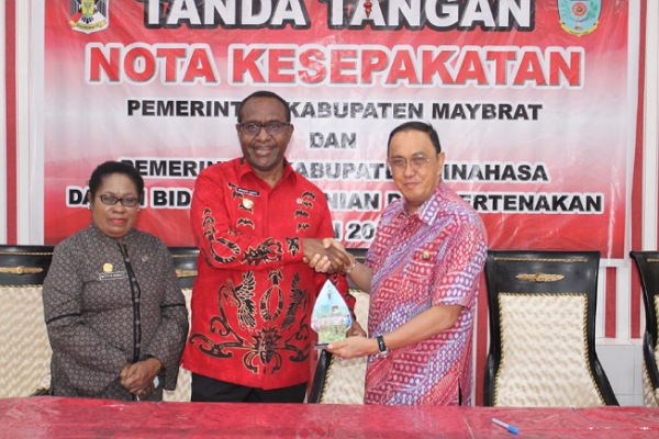 Pemerintah Kabupaten (Pemkab) Minahasa dan Kabupaten Maybrat Papua Barat Jalin Kerjasama Peningkatan Pertanian dan Peternakan, pada 12 Desember 2019, bertempat dirumah dinas bupati minahasa.