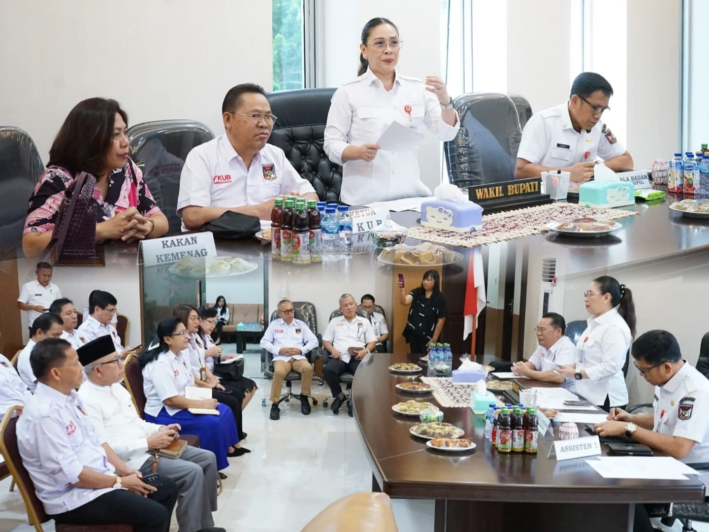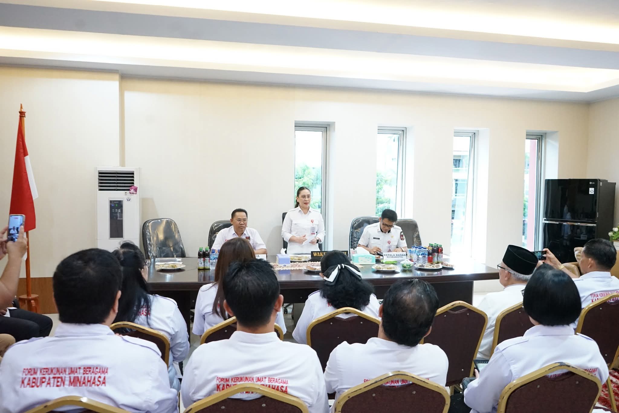 Wakil Bupati Minahasa, Vanda Sarundajang SS, selaku Ketua Dewan Penasehat Forum Kerukunan Umat Beragama (FKUB) Kabupaten Minahasa, memimpin Rapat Koordinasi dan Evaluasi FKUB, bertempat di ruang kerja Wakil Bupati Minahasa, pada Rabu 9 Juli 2025.