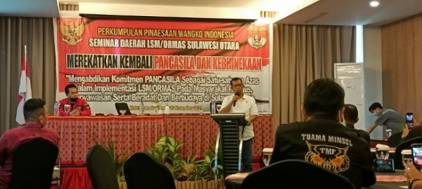 Puluhan LSM/Ormas yang tergabung dalam Perkumpulan (PWI) “Pinaesaan Wangko Indonesia” sukses menggelar seminar dengan tema Merekatkan Kembali Pancasila dan Kebhinekaan, Bertempat di Hotel IBIS Manado, Provinsi Sulawesi Utara, pada Jumat (26/11).