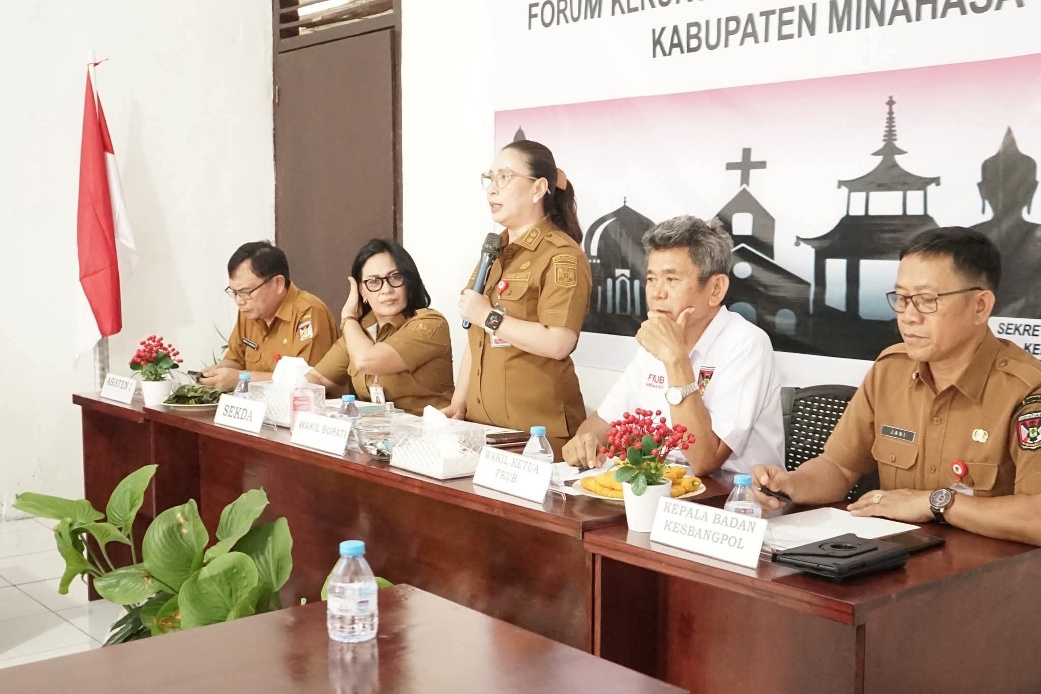 Wakil Bupati ( Wabup) Minahasa, Vanda Sarundajang SS, juga selaku Ketua Dewan Penasehat Forum Kerukunan Umat Beragama (FKUB) Kabupaten Minahasa, memimpin langsung Rapat Koordinasi FKUB bertempat di Kantor Sekretariat FKUB Kabupaten Minahasa, pada Senin 15 September 2025.