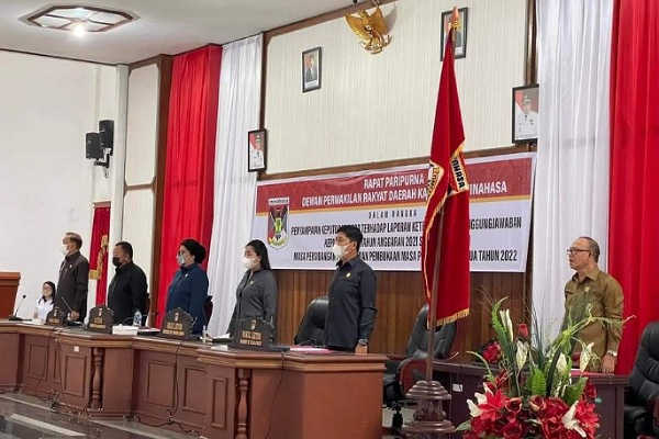 Dewan Perwakilan Rakyat Daerah (DPRD) Kabupaten Minahasa menggelar rapat paripurna dewan, terkait penyampaian keputusan atas Laporan Keterangan Pertanggung Jawaban (LKPJ) Kepala Daerah tahun anggaran 2021, pada Selasa 26 April bertempat di ruang sidang DPRD Minahasa.