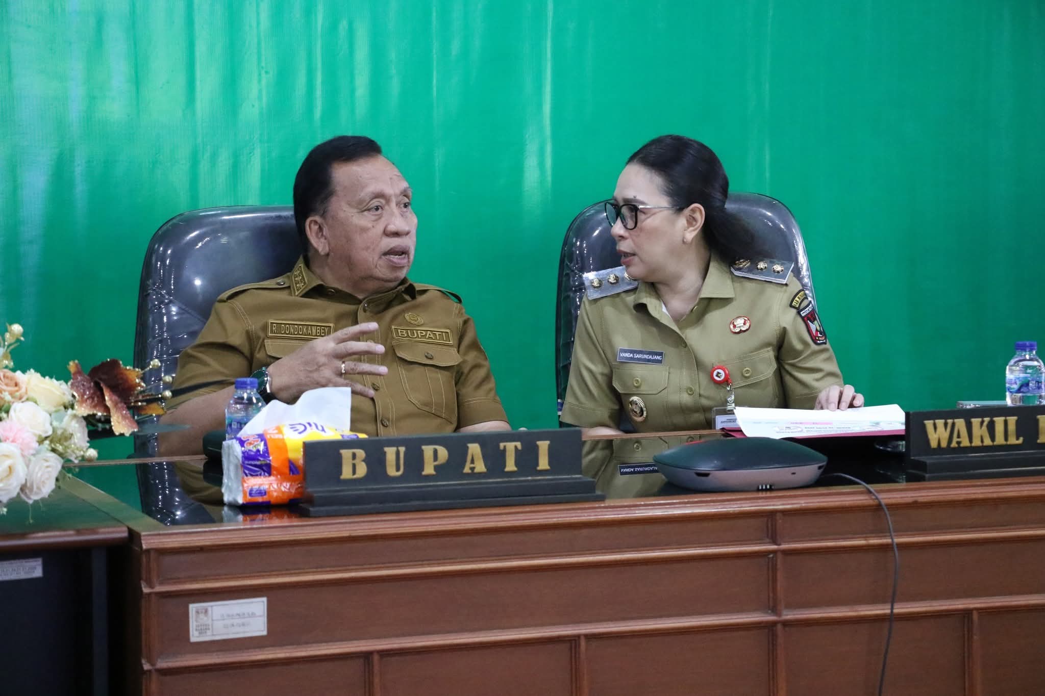 Bupati Minahasa Robby Dondokambey SSi M.AP, bersama Wakil Bupati Minahasa Vanda Sarundajang SS., hadiri Rapat Koordinasi Pengendalian Inflasi yang dipimpin oleh Sekretaris Jenderal Kementerian Dalam Negeri Republik Indonesia, Komjen Pol. Drs. Tomsi Tohir, M.Si, melalui Zoom Meeting. Rapat berlangsung di Ruang Command Center Kantor Bupati Minahasa pada Senin, (23/6/25).