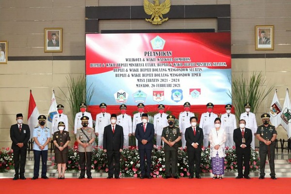 Kelima pasangan Kepala Daerah periode 2021-2024 yang dilantik yaitu Bupati dan Wakil Bupati Minahasa Utara: Joune Ganda dan Kevin Lotulung; Bupati dan Wakil Bupati Minahasa Selatan: Franky Wongkar dan Petra Rembang; Bupati dan Wakil Bupati Bolaang Mongondow Timur: Sachrul Mamonto dan Oskar Manoppo; Bupati dan Wakil Bupati Bolaang Mongondow Selatan: Iskandar Kamaru dan Deddy Abdul Hamid serta Walikota dan Wakil Walikota Tomohon: Caroll Senduk dan Wenny Lumentut.
