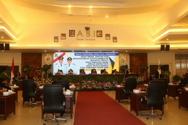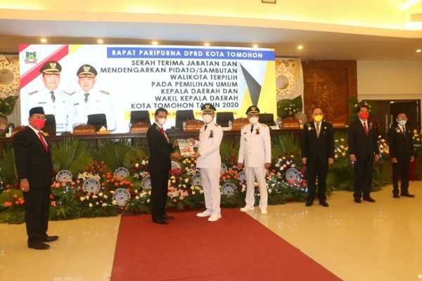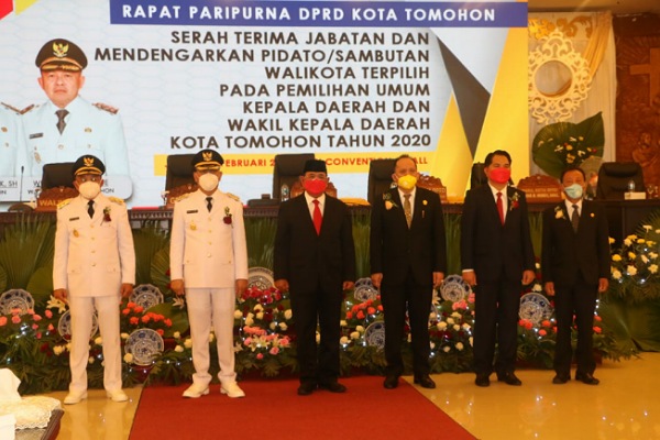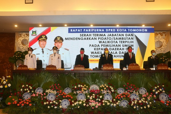 Setelah itu, dilanjutkan Walikota dan Wakil Walikota Tomohon mengikuti rapat paripurna DPRD, dalam rangka serah terima jabatan dan mendengarkan pidato walikota terpilih pada pemilihan umum kepala daerah dan wakil kepala daerah Kota Tomohon tahun 2020 pada hari Jumat, 26 Februari 2021 bertempat di Auditorium Bukit Inspirasi (ABI) Tomohon.
