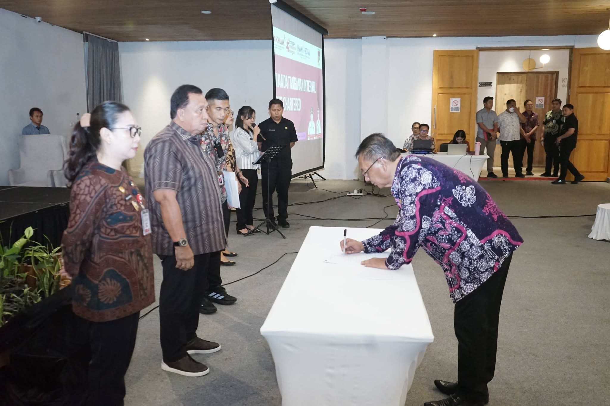 Kegiatan diawali doa dan laporan oleh Kepala Inspektorat Kabupaten Minahasa, Maudy Lontaan, S.Sos, yang kemudian dilanjutkan dengan penandatanganan piagam audit internal oleh sejumlah Organisasi Perangkat Daerah (OPD) sebagai komitmen dalam meningkatkan kualitas pengawasan internal pemerintah.