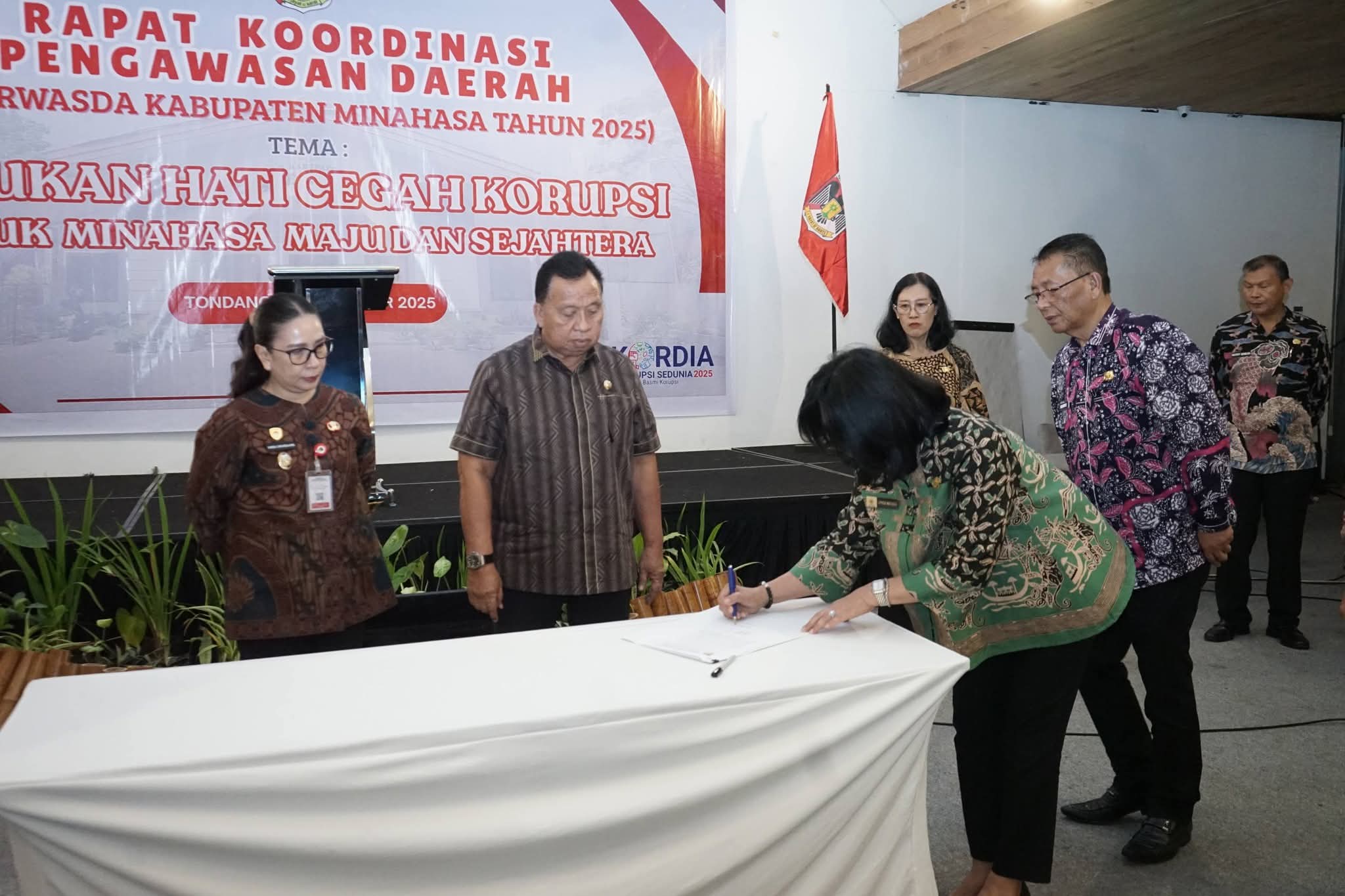Bupati Minahasa Robby Dondokambey SSi, MAP, bersama Wakil Bupati Vanda Sarundajang SS, resmi membuka kegiatan Rapat Koordinasi Pengawasan Daerah (Rakorwasda) yang diselenggarakan oleh Inspektorat Daerah Kabupaten Minahasa, bertempat di Hotel Yama Resort, pada Kamis (4/12/25).