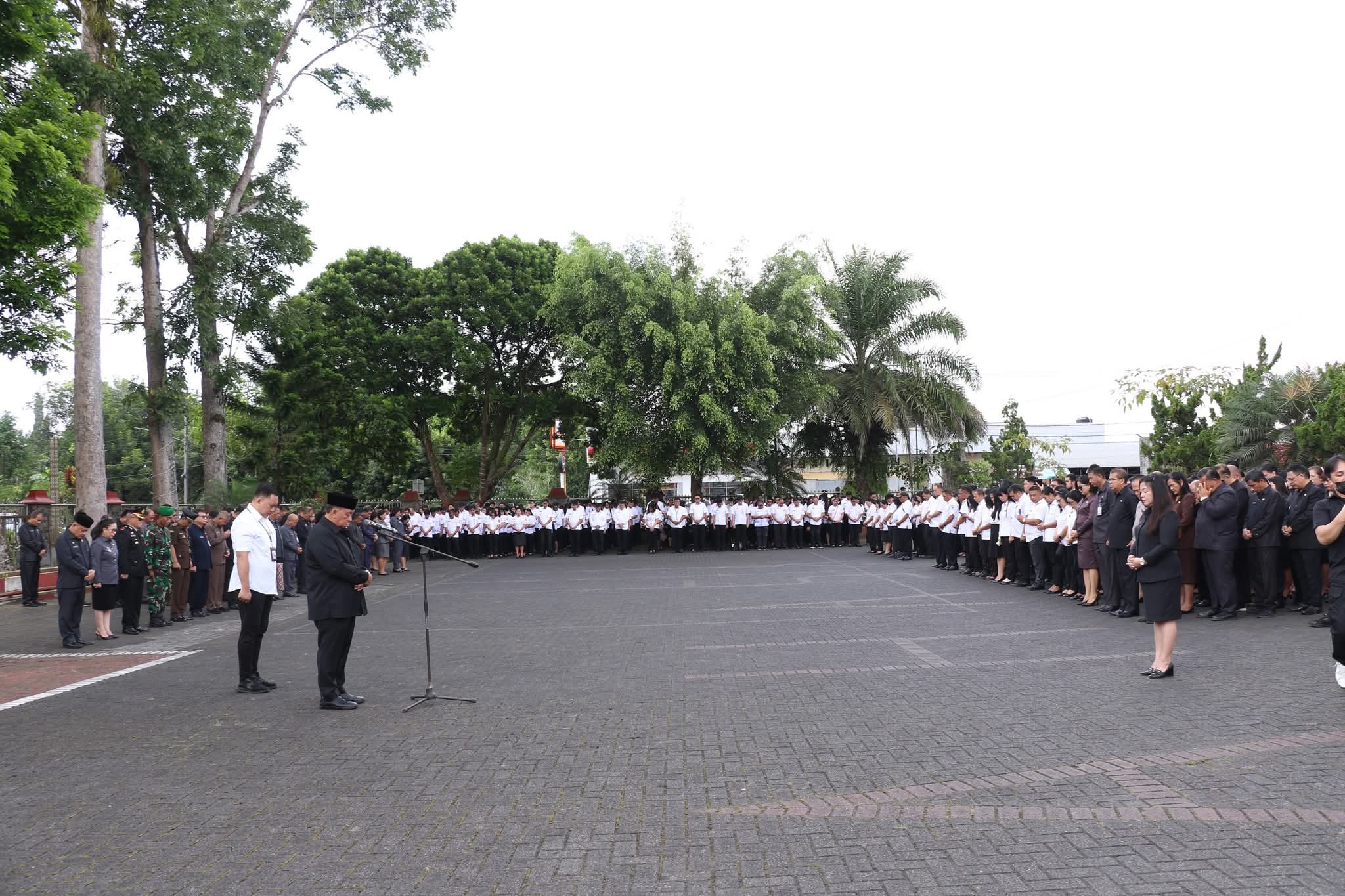 Bupati Minahasa, Robby Dondokambey, S.Si, MAP bertindak selaku inspektur upacara pada Peringatan Hari Kesaktian Pancasila yang dipusatkan di halaman Kantor Bupati Minahasa, pada Rabu 1 Oktober 2025.