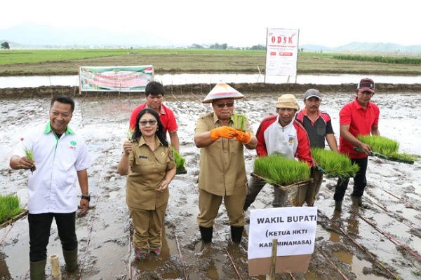 Wakil Bupati Robby Dondokambey SSi (RD), melakukan penanaman Padi M70D, dengan Dinas Pertanian dan Kelompok Tani Kecamatan Kakas Barat Senin 17 Februari 2020, di Desa Touliang, Kecamatan Kakas Barat.