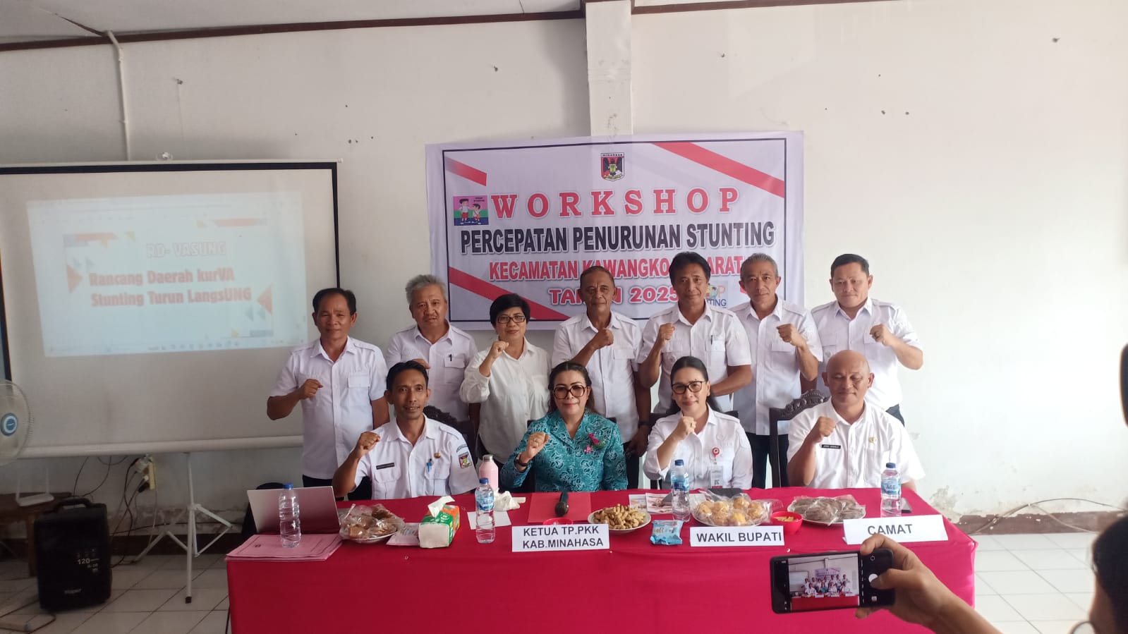 Saya berharap seluruh peserta workshop hari ini mampu memahami percepatan penanganan stunting, baik di tingkat kecamatan dan desa, dan para Camat, hukum tua dan Lurah penggerak PKK, kader posyandu dan seluruh perangkat desa kelurahan memperkuat sinergi dalam intervensi penurunan stunting” ucap Vasung.